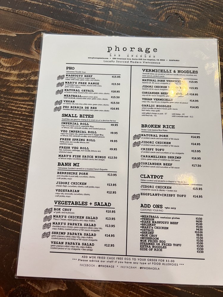 Phorage is a Vietnamese restaurant located in Los Angeles, CA, known for its diverse menu and inclusive environment. They offer a wide range of options, including vegan, vegetarian, and pescatarian dishes. The restaurant is wheelchair accessible, has gender-neutral restrooms, and provides compostable and plastic-free packaging. Customers rave about the delicious Pho options, such as the Mary's Free Range Pho and Natural Oxtail Pho, as well as the Fresh Spring Rolls and Mary's Chicken Salad. The curry waffle fries are also a standout item that pairs perfectly with a cold beer. The generous portions, reasonable prices, and friendly service make Phorage a great spot for lunch or dinner. Don't miss out on the opportunity to try their flavorful and authentic Vietnamese cuisine.